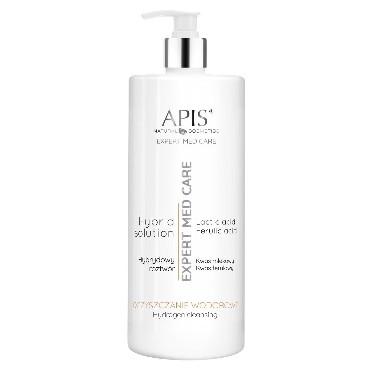 Apis Expert Med Hydrogen Cleansing is a professional cleansing solution, created for use in advanced cosmetic treatments. Its formula is based on a combination of ferulic acid and lactic acid, making it effective yet safe for all skin types. The product is designed for use with cosmetic devices, supporting their function and increasing the effectiveness of cleansing and rejuvenating therapies.