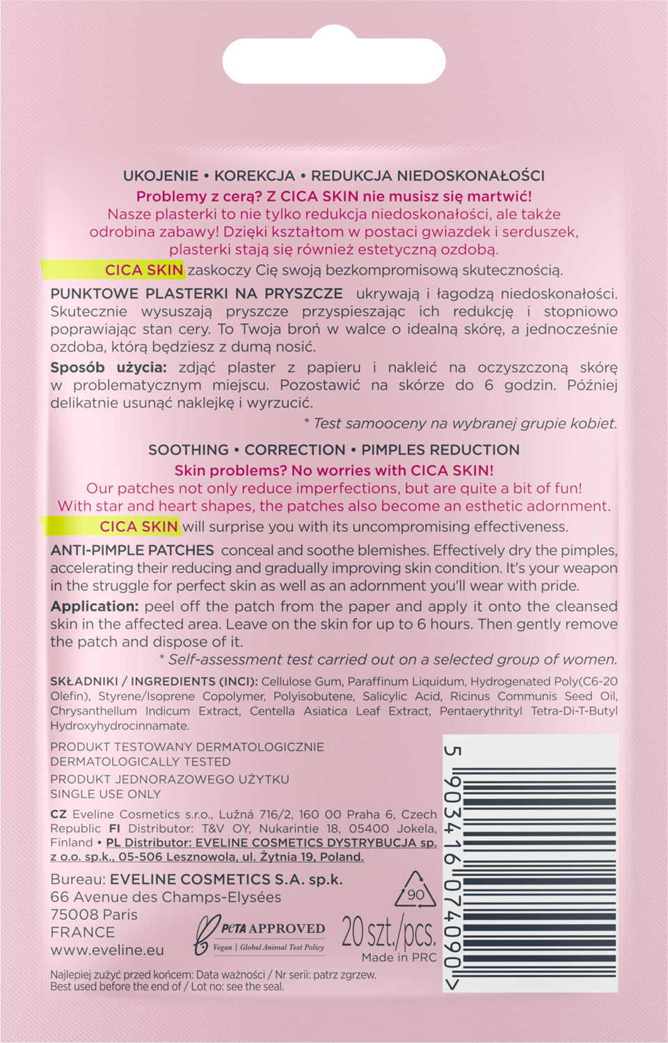 A quick and effective way to deal with persistent imperfections. Thanks to their thin, flexible structure, the patches adhere perfectly to the skin and create a protective barrier that ensures the healing of lesions. They conceal lesions and facilitate comfortable functioning during the day.