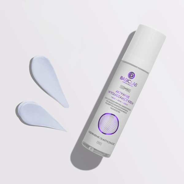 BasicLab Copperis Active Smoothing Face Cream is an advanced dermo-cosmetic designed for the comprehensive care of the face, neck, and décolleté. Its specialized formula is based on a high concentration of active ingredients, including 0.3% copper peptide and a 10% biocompatible collagen polypeptide complex. The product targets the visible signs of ageing, such as loss of firmness and elasticity, to restore a more youthful and resilient skin structure.
