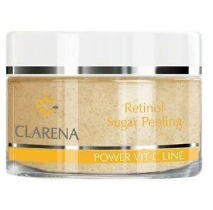- Clarena Retinol sugar peeling with a double exfoliation effect is recommended for mature, rough skin and the skin with discolourations. The numerous oils contained in mandelic, sunflower, sesame, macadamia nut and olive oil nourish and smooth the skin.