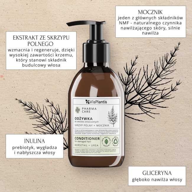 - Conditioner with horsetail intensively nourishes the hair and prevents breakage of the ends. Thanks to its formula, the hair is shiny and looks healthy.