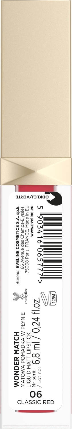 The recipe of Wonder Match lipstick combines intense pigments for a matte effect that lasts for many hours without the need for corrections. The quick-setting formula makes it an ideal product that guarantees comfortable wearing without any feeling of heaviness or stickiness. The waterproof long-lasting formula makes the lipstick resistant to abrasion, reflection and even... kisses!