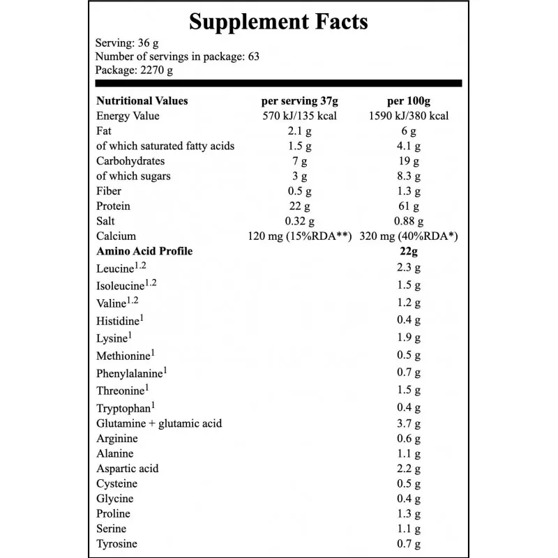 2 BCAA branched-chain amino acids, total content per 100g: 5 g
