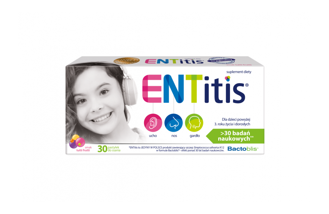 Dietary supplement in the form of lozenges with a tutti frutti flavor intended for children over 3 years of age and adults. The preparation can be a supplement to the daily diet of people staying in large groups of people such as kindergarten, school or work and people who have an increased tendency to feel discomfort from the ear, nose and throat, in order to supplement the microflora of the upper respiratory tract.