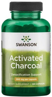 Swanson Activated Charcoal 260mg Aktywny Węgiel Drzewny Wspomaga Układ Trawienny 120 Kapsułek