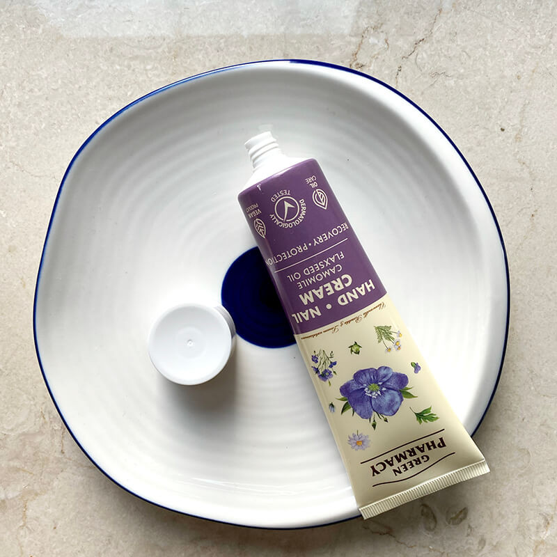 - Regenerujący i łągodzący krem do rąk i paznokci z ekstraktem z rumianku.