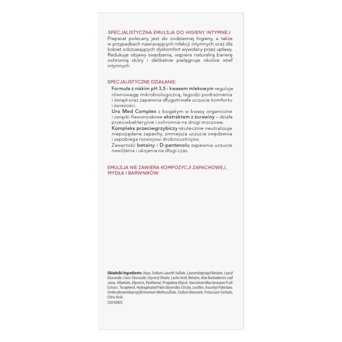Advanced Med+ to emulsja stworzona z myślą o kobietach, które potrzebują codziennego wsparcia w profilaktyce infekcji intymnych oraz nawracających infekcji dróg moczowych. Dzięki zaawansowanej formule URO MED COMPLEX zapewnia ochronę, ukojenie i równowagę mikroflory już od pierwszego użycia.