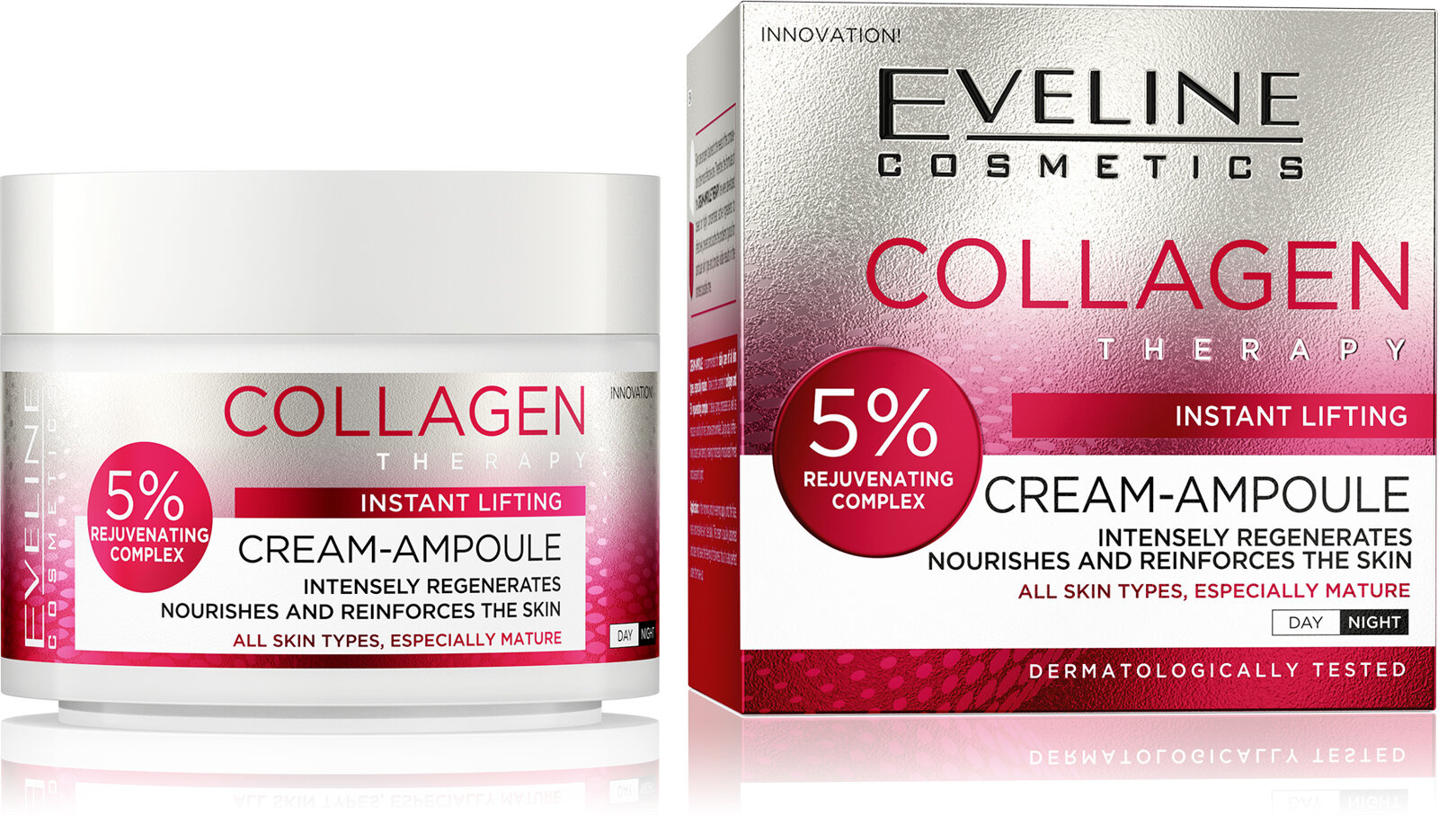 Eveline Kolagen Intensywnie Odmładzający Krem-Ampulka 5% dla każdego Rodzaju Skóry na Dzień i na Noc 50ml