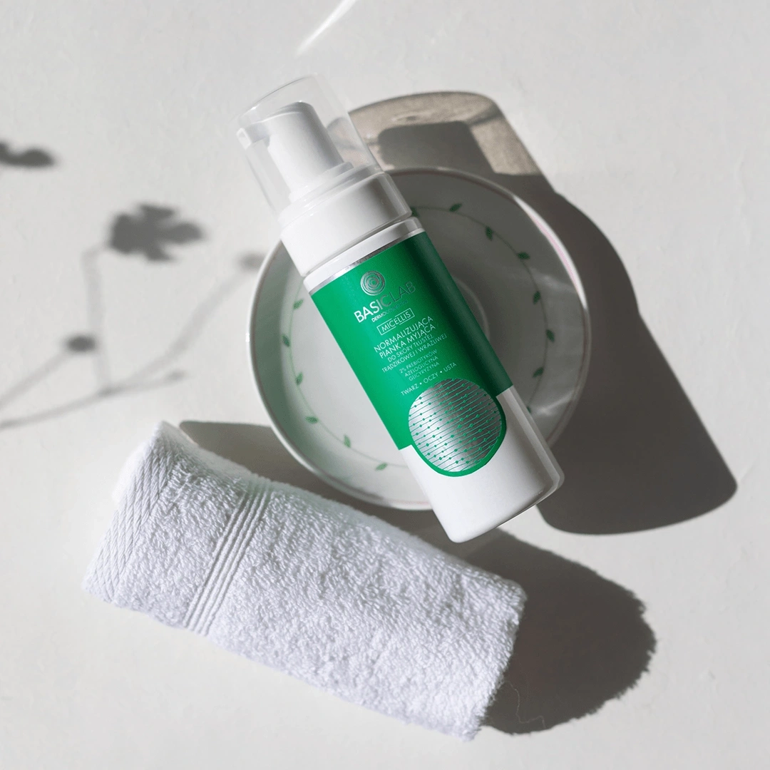 BasicLab Micellis Normalizująca Pianka Myjąca 2% Prebiotyków Azeloglicyna Glicyryzyna dla Skóry Tłustej Trądzikowej i Wrażliwej 150ml