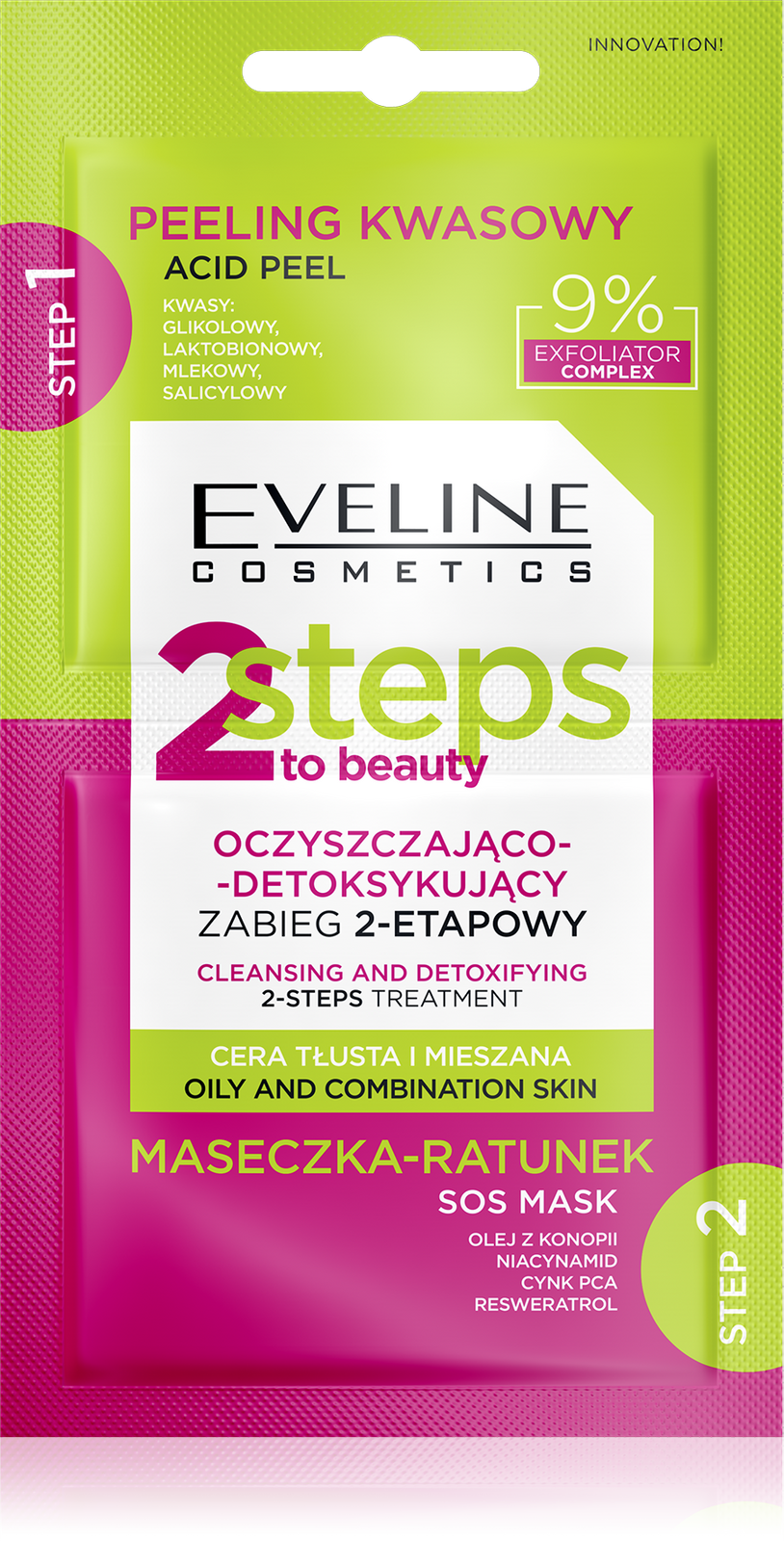 Eveline 2 Steps To Beauty Oczyszczająco-Detoksykujący Zabieg 2-Etapowy dla Skóry Tłustej i Mieszanej 2x4ml
