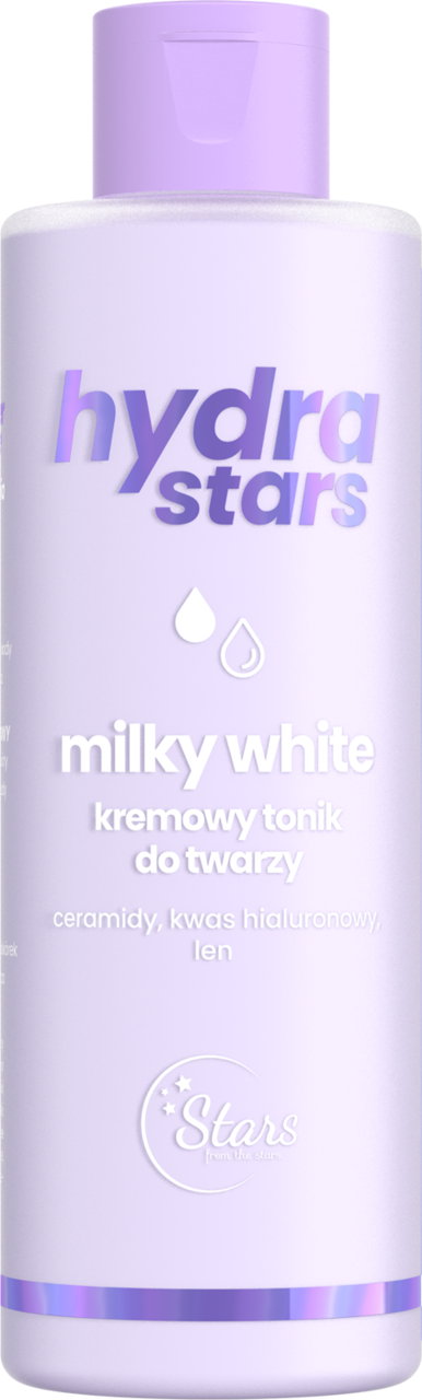 • Kremowy tonik do twarzy Hydra Stars Milky White z ceramidami, kwasem hialuronowym i lnem.
