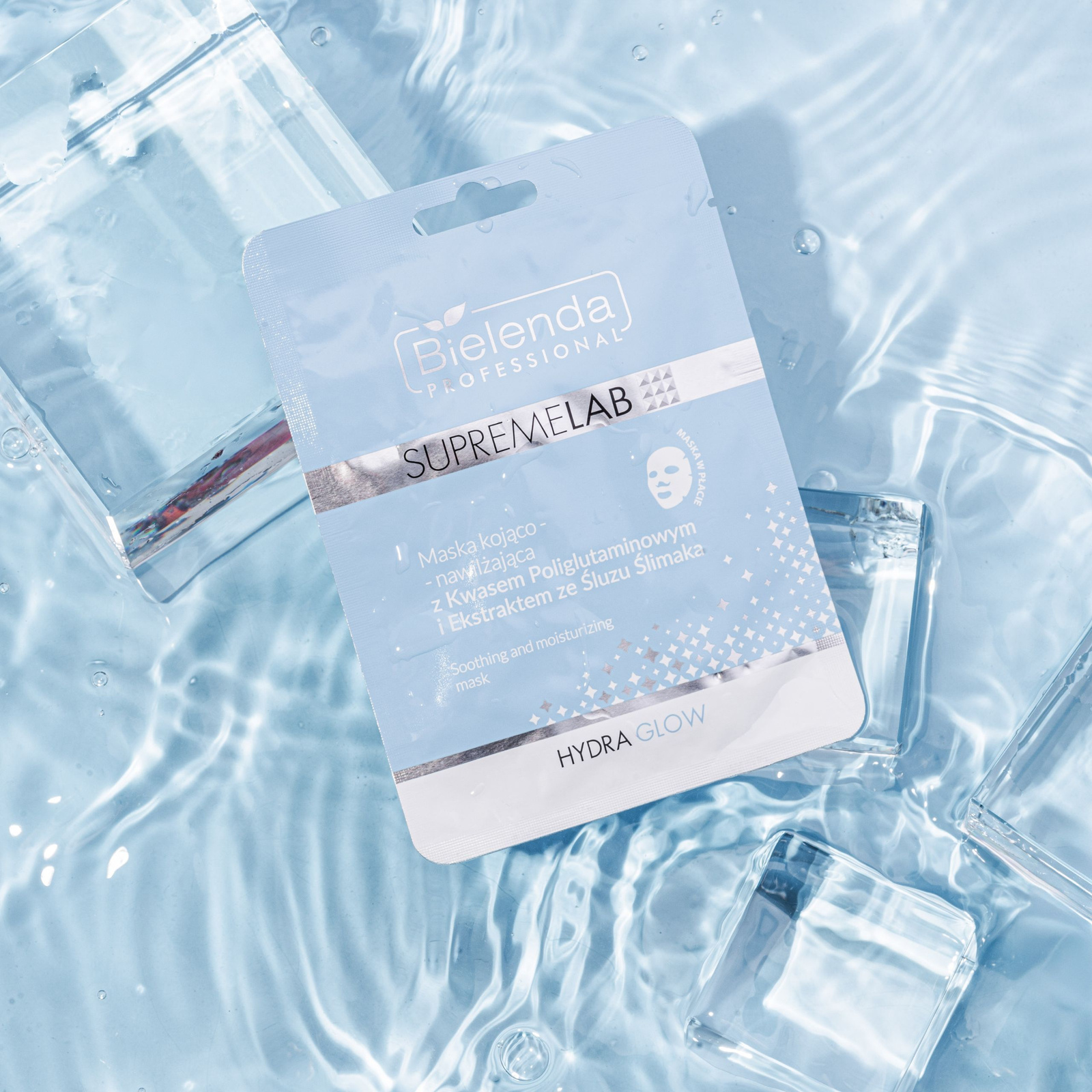 Bielenda Professional Supremelab Hydra Glow Kojąco - Nawilżająca Maska z Kwasem Poliglutaminowym i Ekstraktem ze Śluzu Ślimaka dla Skóry Odwodnionej Wrażliwej 20g