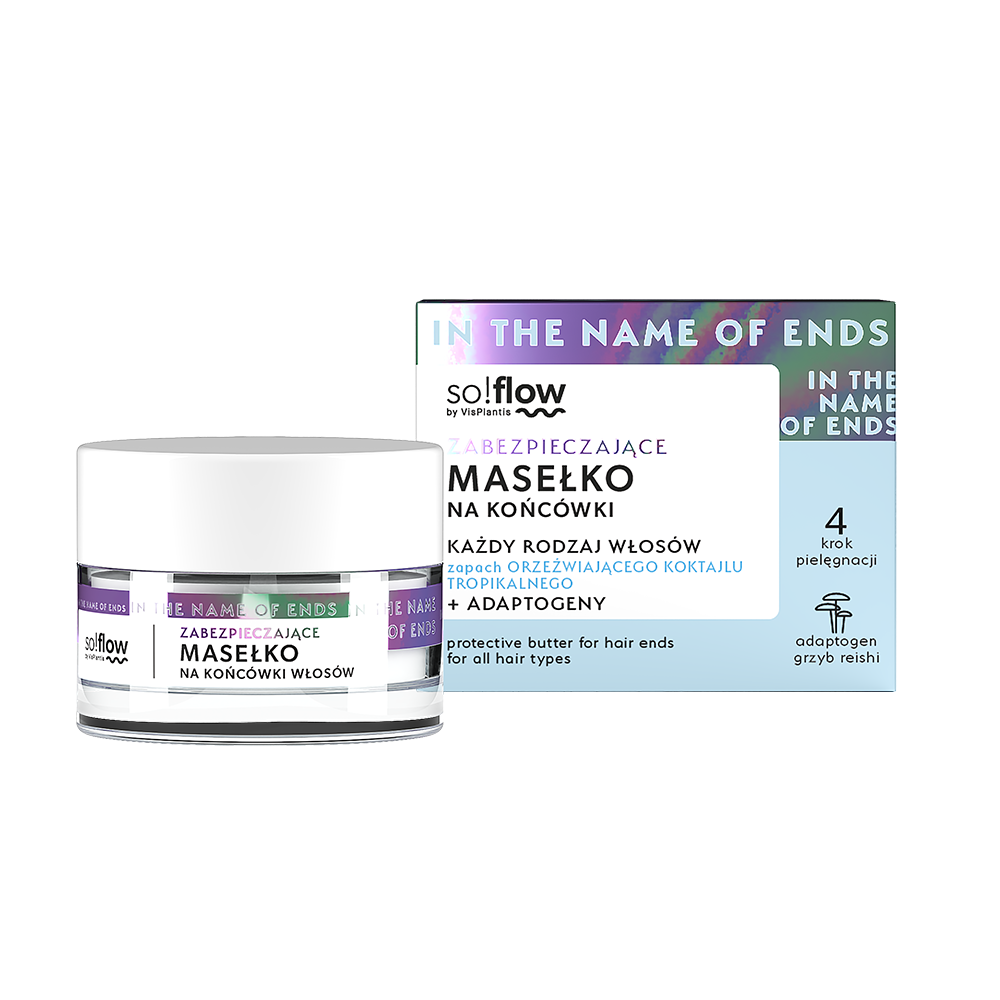 - Masełko na końcówki włosów so!flow regeneruje, nawilża i dodaje blasku. Zawarte w składzie olej rycynowy i olej kokosowy uelastyczniają i wzmacniają je, a masło kakaowe i masło shea odżywiają i sprawiają, że na nowo są one lśniące.