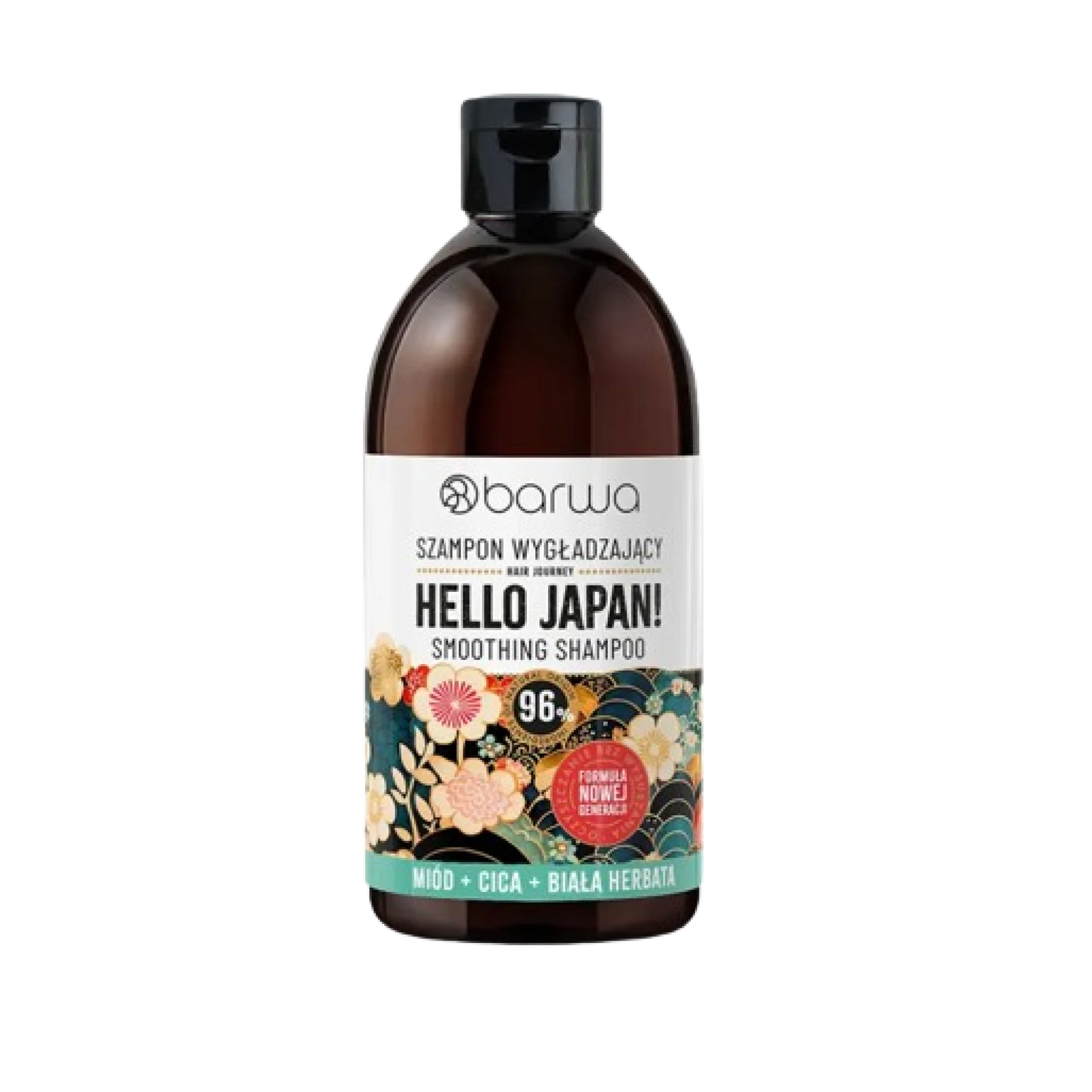 • Hello Japan wygładzający szampon o zapachu białej herbaty do pielęgnacji skóry głowy i włosów normalnych i puszących się. 96% składników pochodzenia naturalnego.