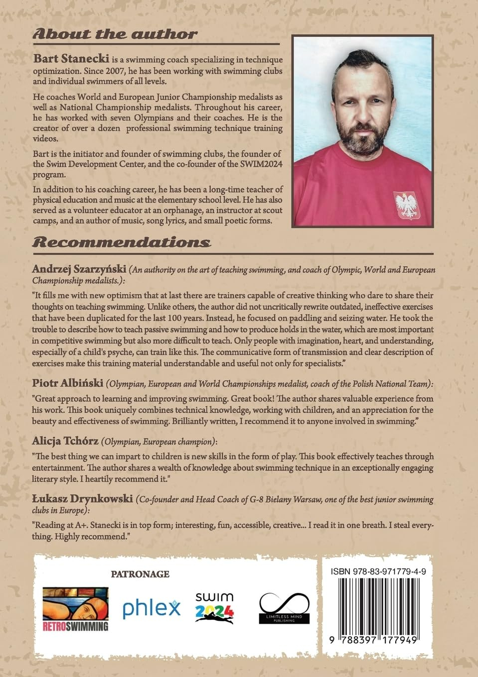To wyjątkowa książka o technice i nauce pływania, poparta bogatym doświadczeniem w pływaniu wyczynowym i międzynarodowymi sukcesami w tej dziedzinie. Jest oficjalnie rekomendowany przez wybitnych trenerów pływania i olimpijczyków.